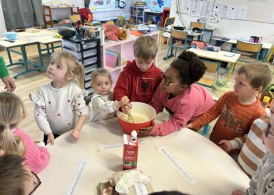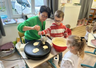 Au menu de la journée : préparation de la pâte à crêpes, bonne humeur… et surtout dégustation gourmande.